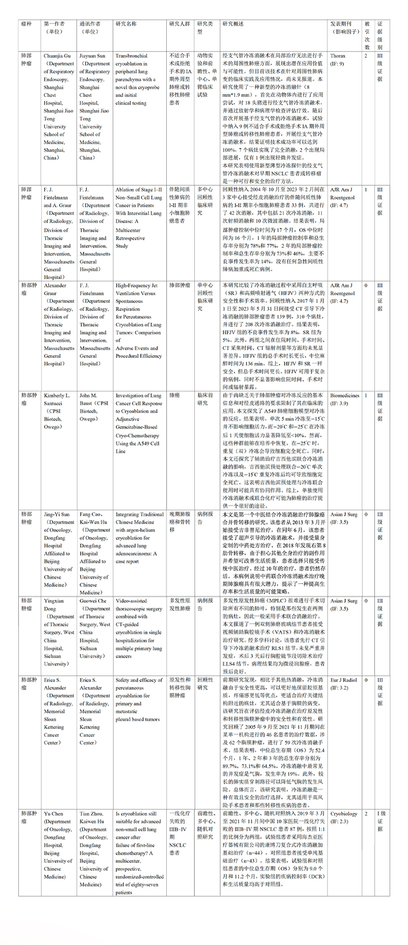 2024年度冷凍消融實(shí)體腫瘤年度進(jìn)展--肺部腫瘤——【海杰亞科研資訊】第301期